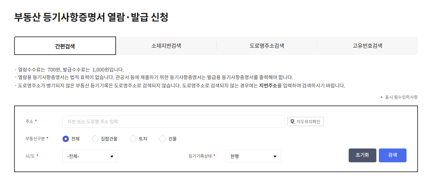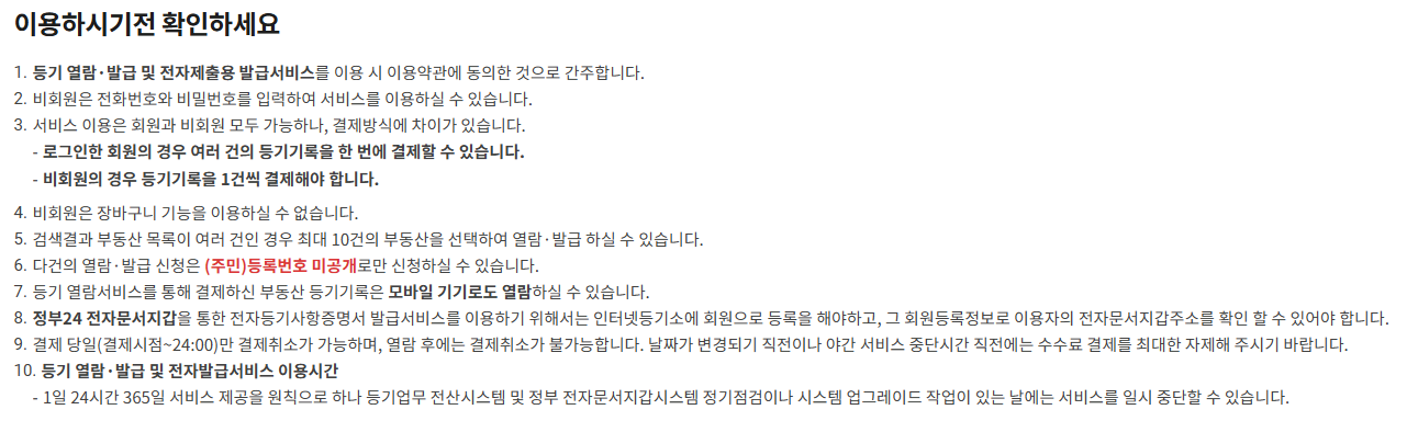 - 주소 오입력 주의 – 정확한 주소로 검색해야 원하는 등기부등본을 확인할 수 있습니다. 주소를 잘 확인하세요.