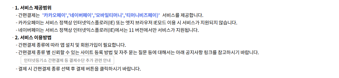 간편결제는 카카오페이 네이버페이 모바일티머니 티머니 비즈페이로 결제 가능합니다.
