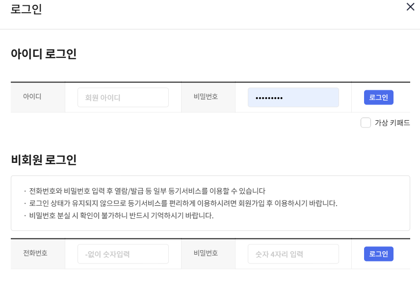 회원가입 또는 비회원 모두 이용가능 합니다.