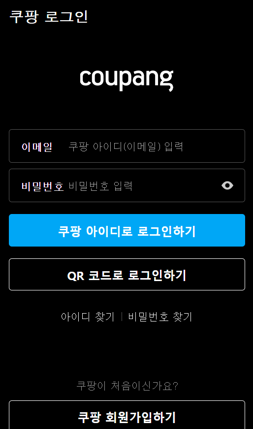 쿠팡 쇼핑몰 아이디와 비밀번호를 입력해주세요.