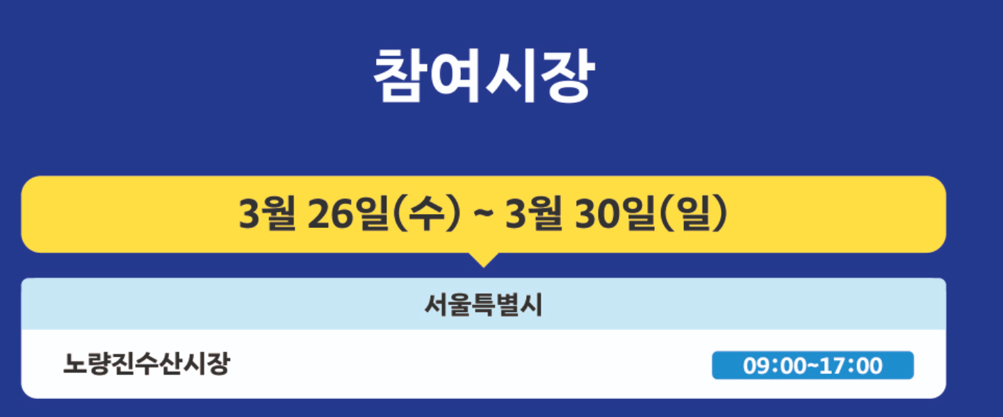 노량진 수산시장은 행사기간 3월 26일 ~ 3월 30일까지 입니다.